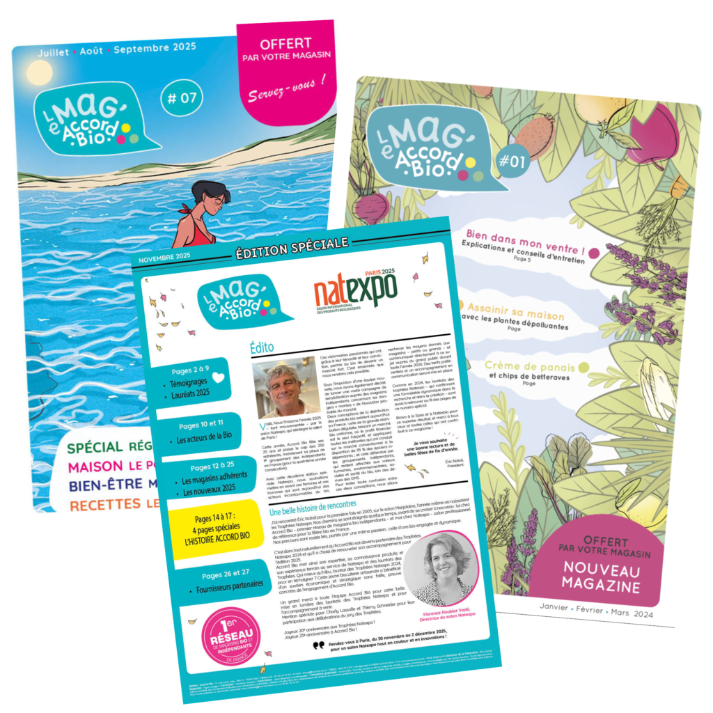 Accord Bio, créée en 2000, regroupe plus de 270 magasins à travers la France, partageant les valeurs d’indépendance, de proximité avec les consommateurs et de soutien aux producteurs locaux.